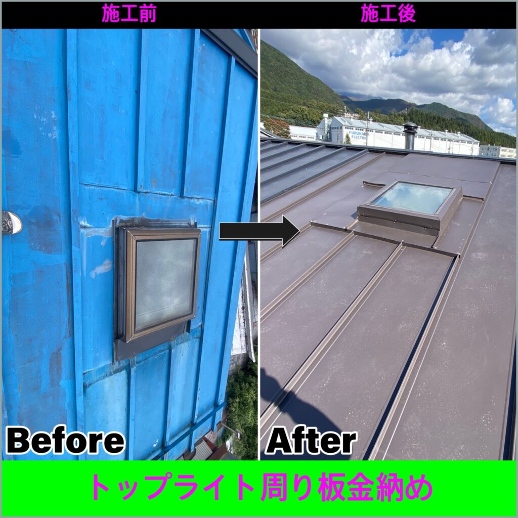 天窓からの雨漏り修理 板金工事