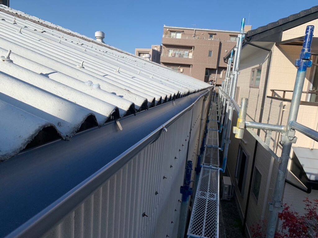 工場の雨樋新設致しました! 屋根の軒の出が少なく苦労しました( ; ; )島田建築板金 屋根のプロフェッショナルが住まいの安全を守ります 屋根や雨樋に関するトラブルでお困りではありませんか? 島田建築